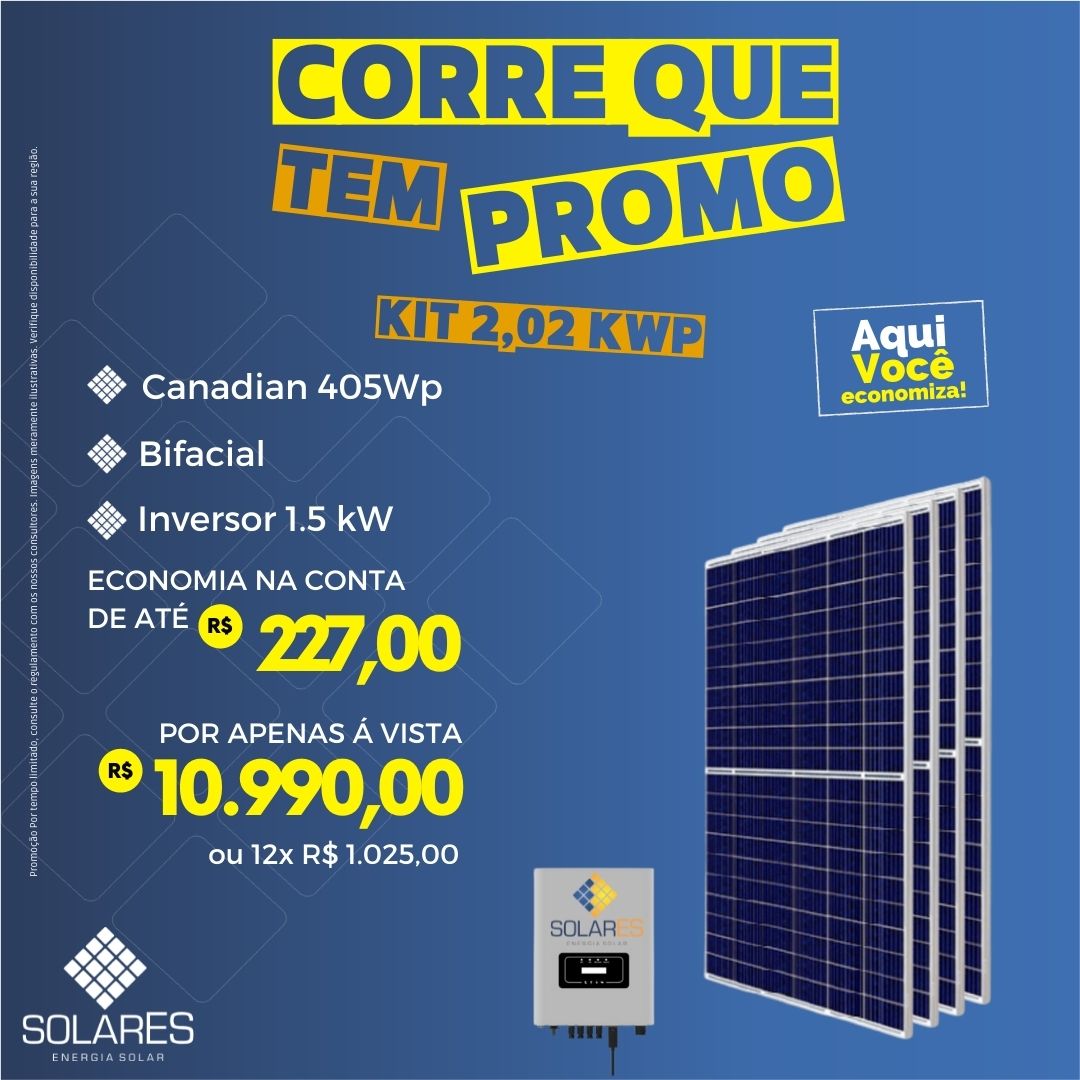 Kit completo já com a instalação inclusa para a região de Montes Claros/MG. Este KIT lhe dará uma economia de até R$ 227,00.